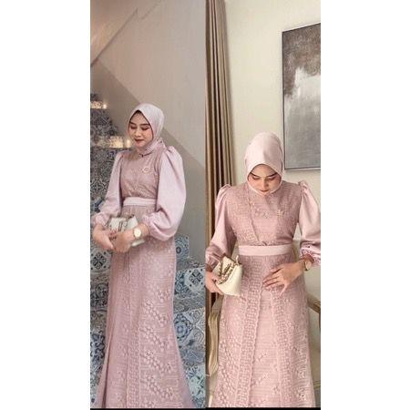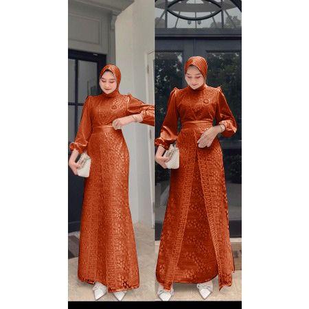 VANNAMILLE ID MAXI DRESS MALIKA BRUKAT FASHION MUSLIM WANITA OUFIT LEBARAN SERAGAMAN PESTA GAMIS KEKINIAN BERKUALITAS - TERACOTTA, S-M