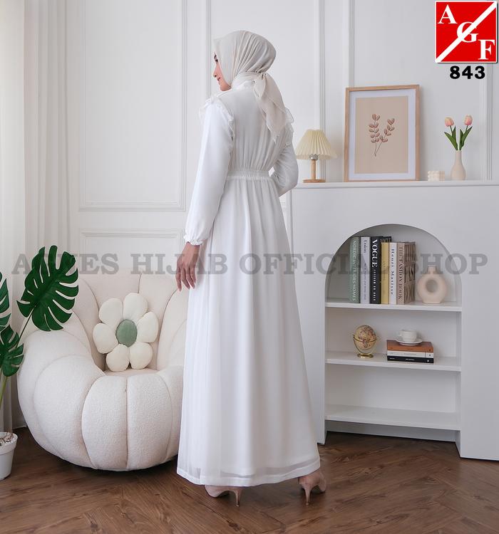 AGNES HIJAB - SYAFA DRESS GAMIS PUTIH LEBARAN 2026 TERBARU BAJU MUSLIM WANITA DEWASA GAUN PESTA KONDANGAN MEWAH SIMPLE ELEGAN PENGAJIAN MANASIK HAJI UMROH 843 - PUTIH, SIZE M