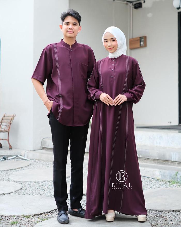 NABILA DRESS COUPLE BAJU SARIMBIT PASANGAN BAHAN SABRINA KOKO KEMEJA GAMIS MUSLIM DESAIN SARIMBIT PASANGAN NYAMAN DAN STYLISH - BURGUNDY, KOKO-XL