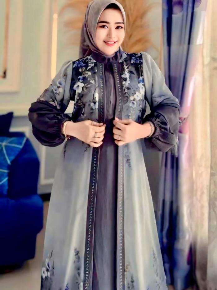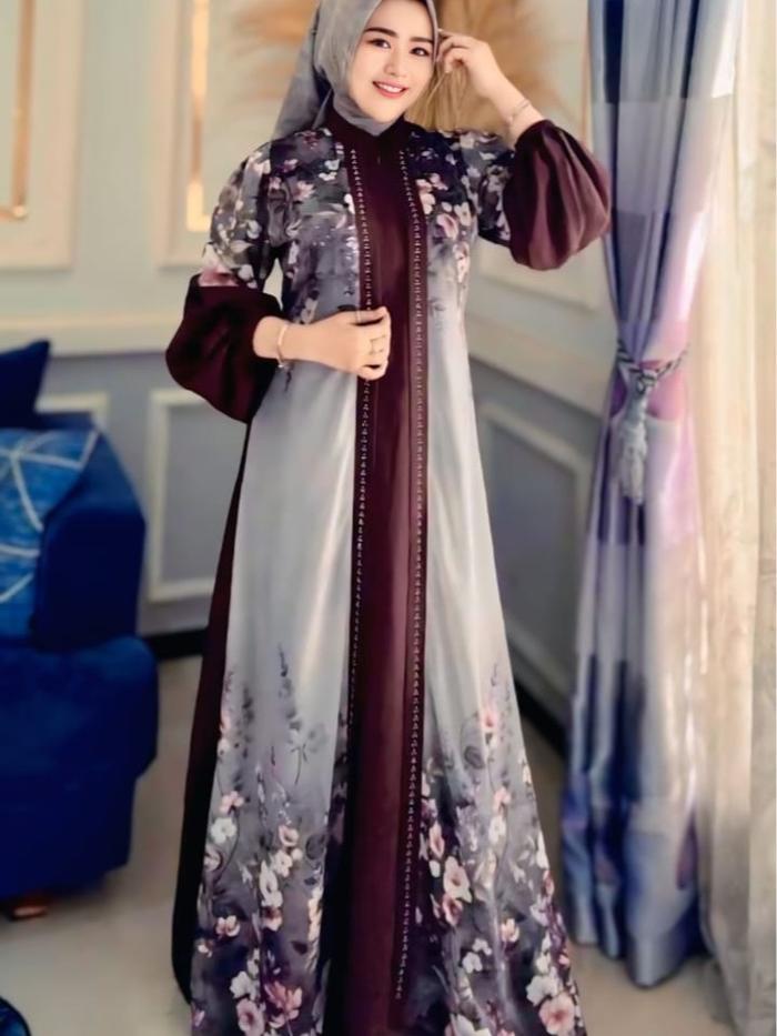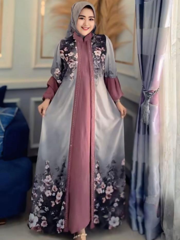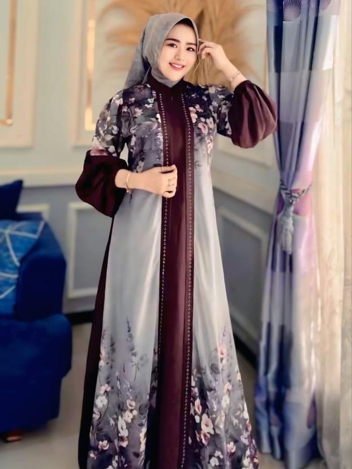 DINARAA DRESS BAHAN CERUTY KOMBINASI AIRFLOW BY RIZHA BOUTIQUE GAMIS MUSLIM BELAH TENGAH - DINARA PINK ROSE, L