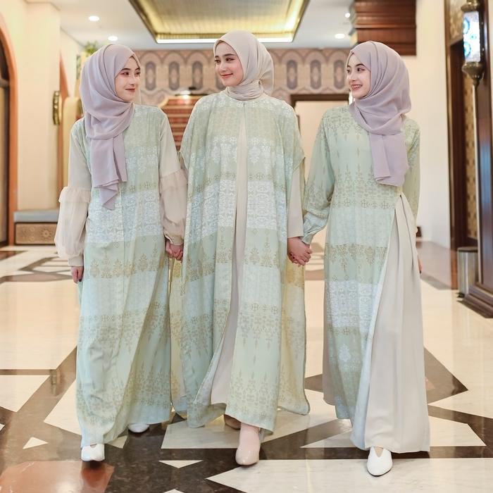 REREYSHOP AMAIA RUFFLE DRESS ONLY SARIMBIT RAMADHAN DRESS COUPLE TERBARU NYAMAN ONE SET FAMILY SARIMBIT KELUARGA - WHITE CREAM, ALL SIZE