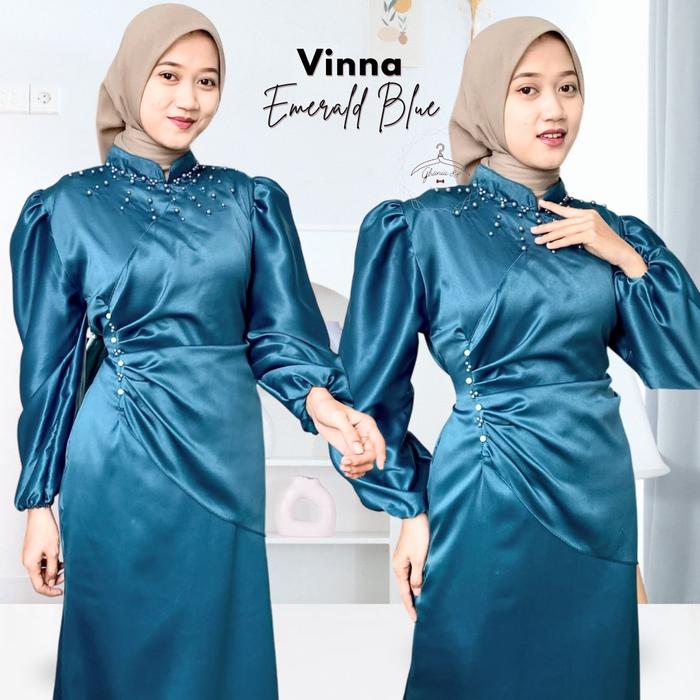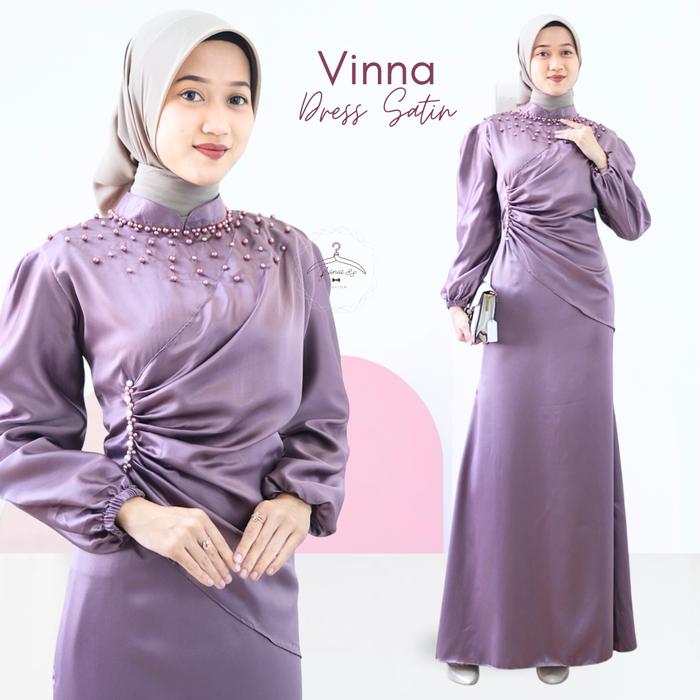 VINNA DRESS MAXI KONDANGAN GAUN PESTA ATASAN WANITA BRIDESMAID SATIN TERMURAH VIRAL PREMIUM RSF GAMIS MUSLIM LEBARAN - DRESS VINNA HITAM, M
