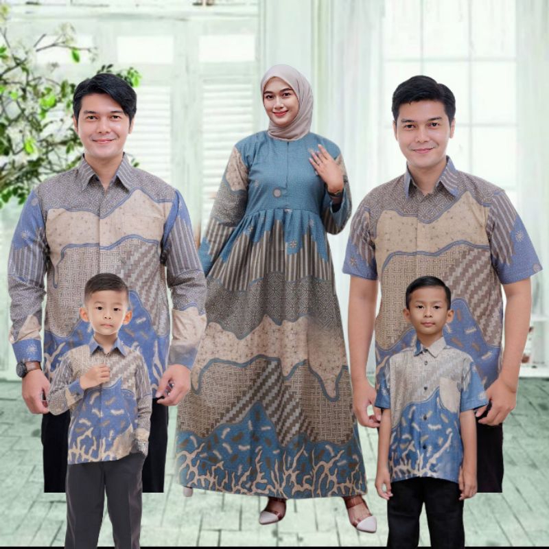 Gamis Batik Couple Keluarga Ayah Ibu Anak | Seragam Batik Lebaran Modern | Baju Pasangan Suami Istri