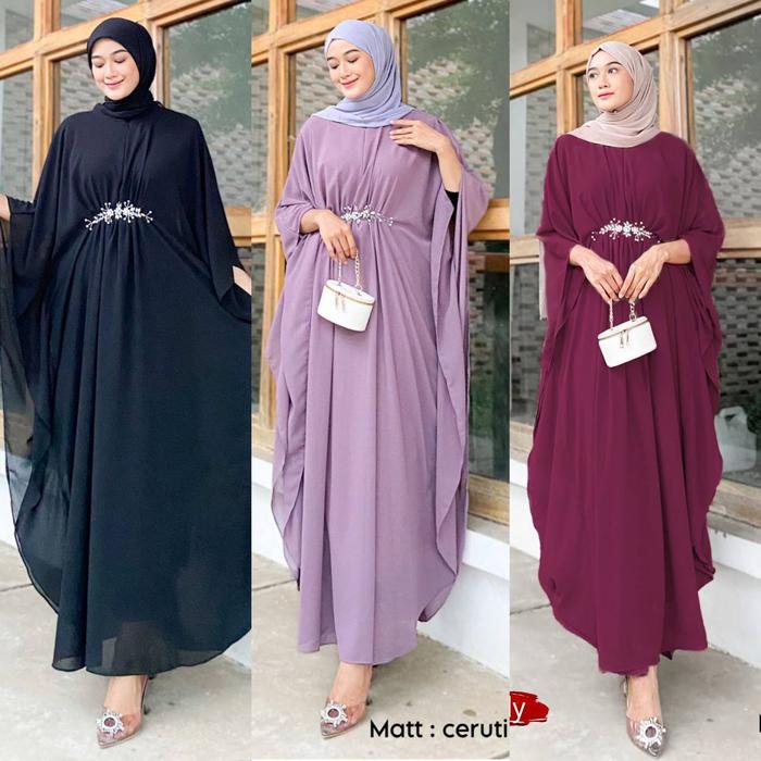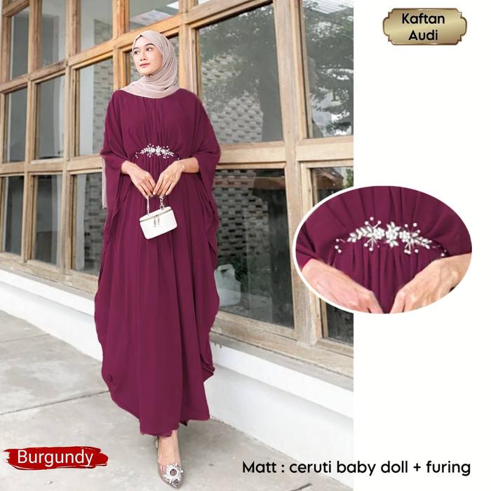 KAFTAN AUDI BAHAN CERUTI BABYDOLL LS FURING PAYET MUTIARA HANDMADE PREMIUM BUSUI FRIENDLY - SAGE.