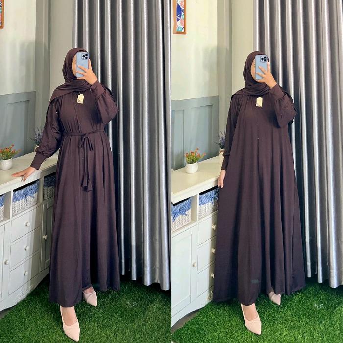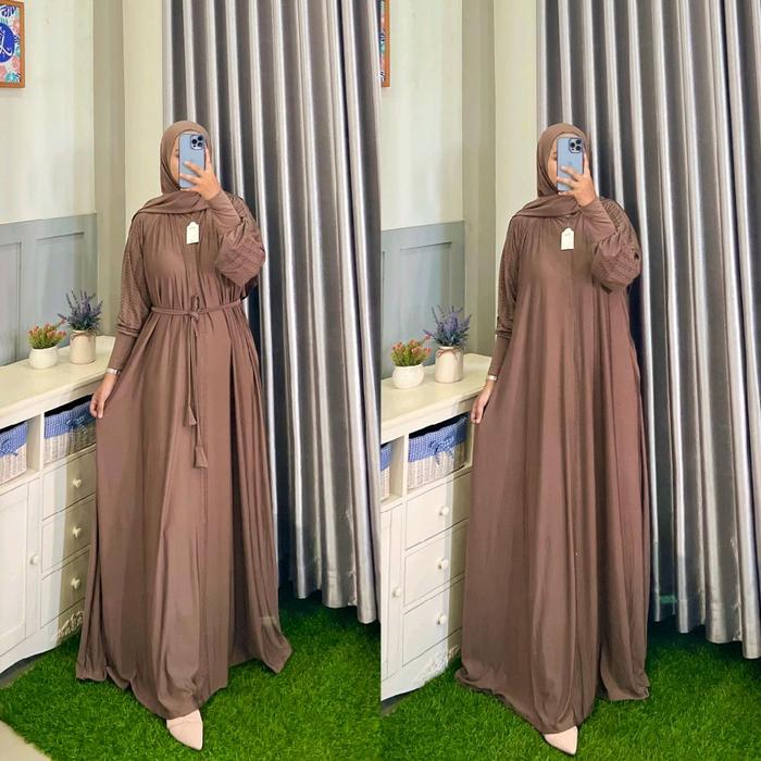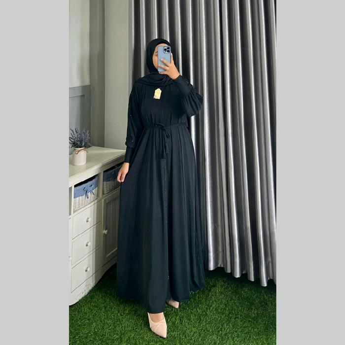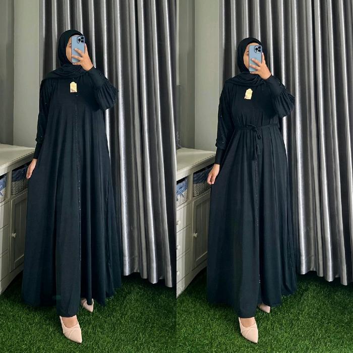 MEISYA ABAYA SAMIRA SET HIJAB PASMINA FREE BELT BAHAN JERSEY KOREA PREMIUM MUSLIM MEWAH SYARI - HITAM, ALL SIZE