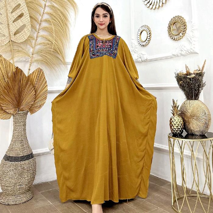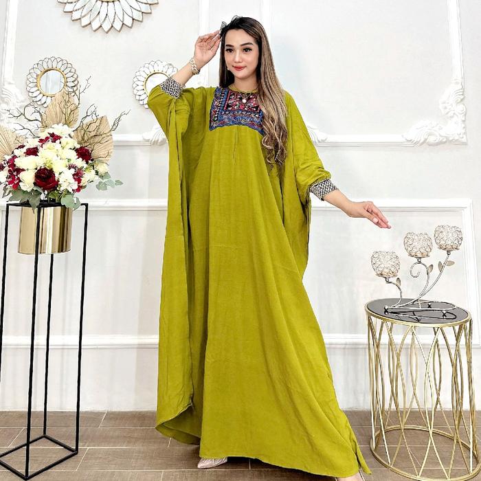 ABAYA KAFTAN BATWING RAYON LOS RENDA BORDIR MAROKO CANTIK NYAMAN - HITAM, BUSUI