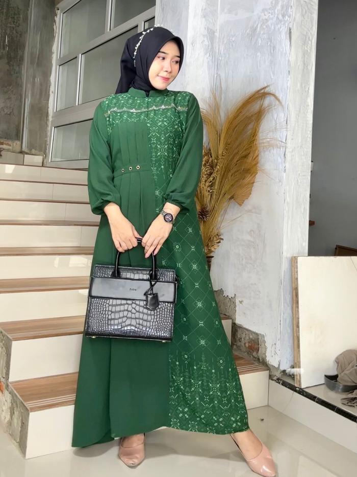 HWF - GAMIS TSABINA. GAMIS MUTE SWAROVSKY. CRINGKLE MOTIF - TSABINA HITAM