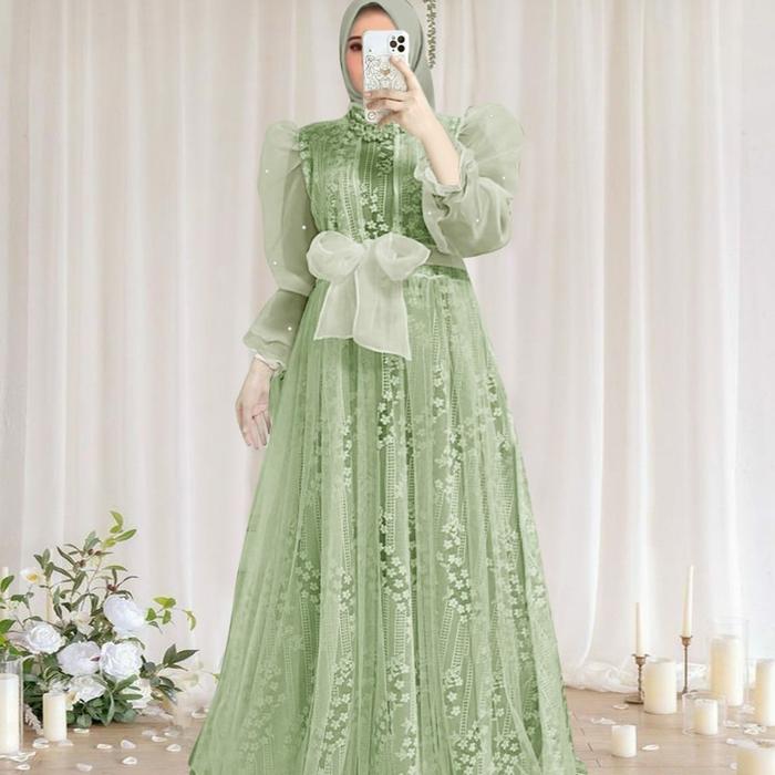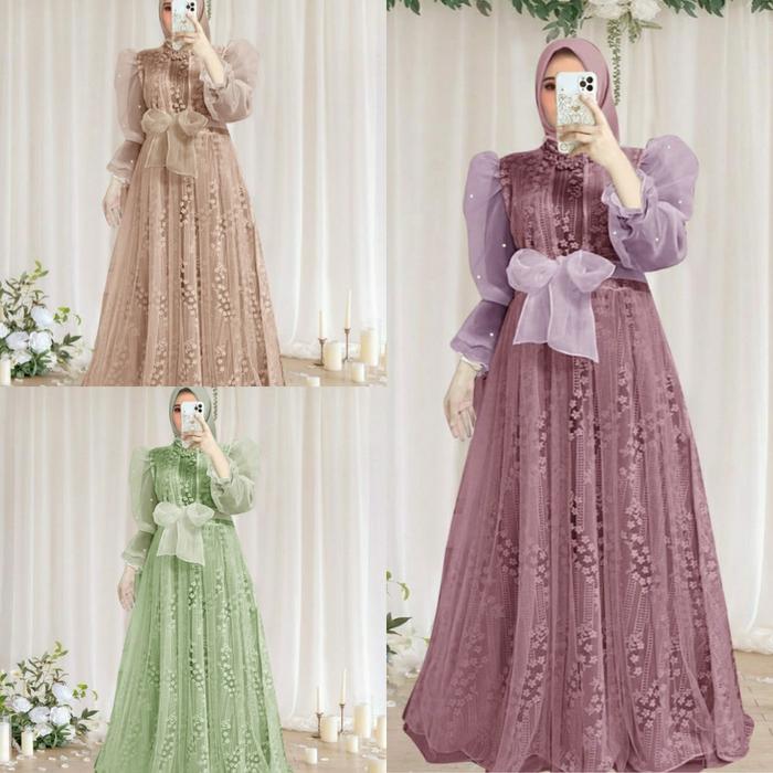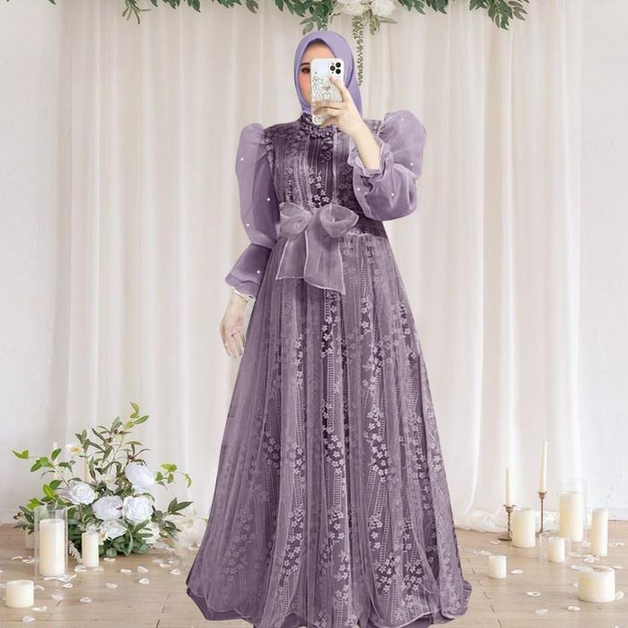 DRESS BRUKAT ALYSA BUSUI DRESS WANITA TERBARU DRESS KONDANGAN WANITA FASHION MUSLIMAH BUSANA MUSLIM WANITA - DENIM, M