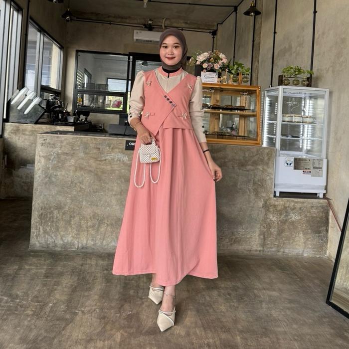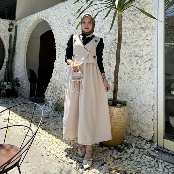 NAZWA DRESS BUSUI SOFT KNIT GAMIS SIMPLE WANITA ELEGAN KEKINIAN DEWASA MEWAH - CREAM