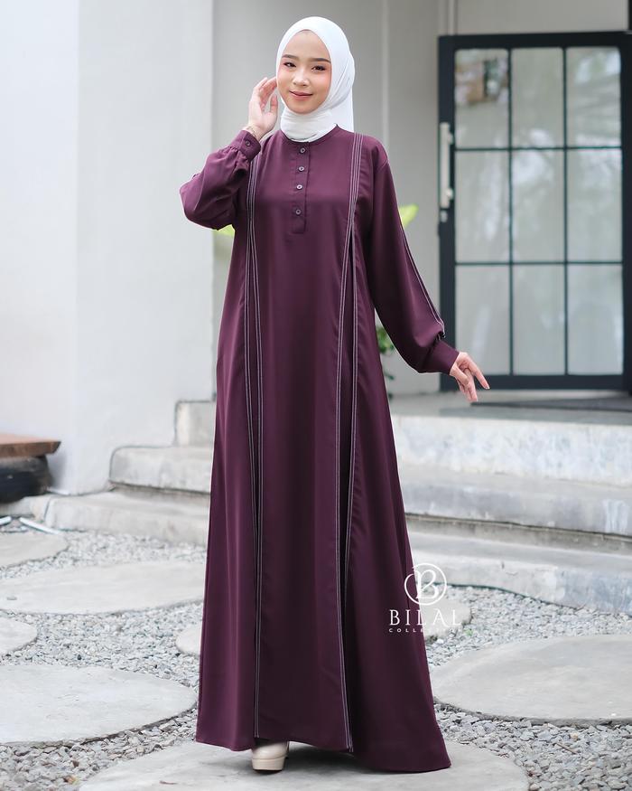 NABILA DRESS GAMIS WANITA MUSLIM SIMPLE ELEGAN - BURGUNDY, L