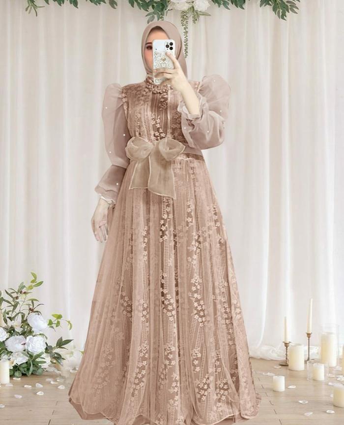 DRESS BRUKAT ALYSA BUSUI DRESS WANITA TERBARU DRESS KONDANGAN WANITA FASHION MUSLIMAH BUSANA MUSLIM WANITA - DENIM, M