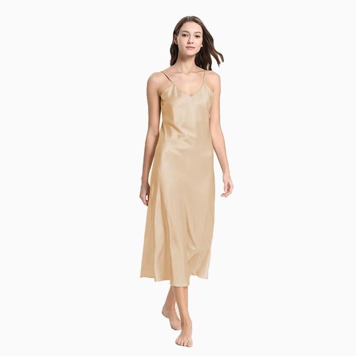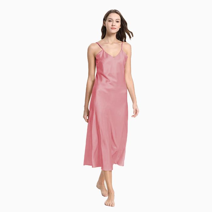 LONG DRESS CAMISOLES SEXY SATEN TALI KECIL WANITA GAYA KOREA - JFASHION MINORI - MAROON, M/L