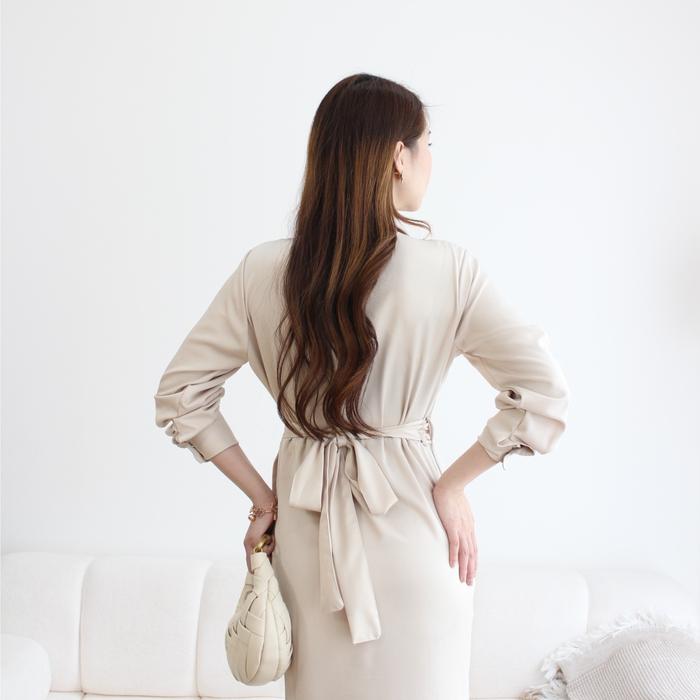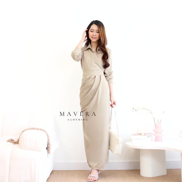 MAVERA - VICTORIA DRESS COTTON SILK KIMONO DRAPED LONG DRESS MEWAH ELEGAN LEMBUT NYAMAN SIMPLE / DRESS WANITA CASUAL - IVORY