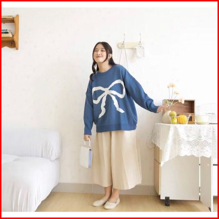 Alvia Sweater Oversize Knit - Sweater Rajut Wanita Motif Pita