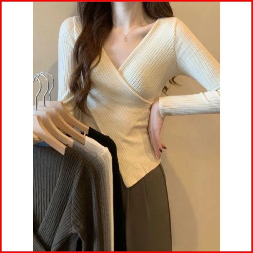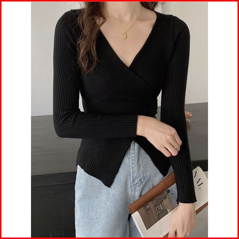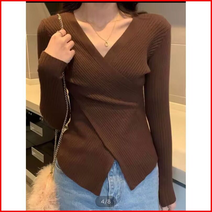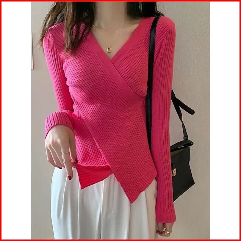Eliza Knit Sweater Wanita V-neck Gaya Korea All-match Pakaian Wanita Knit