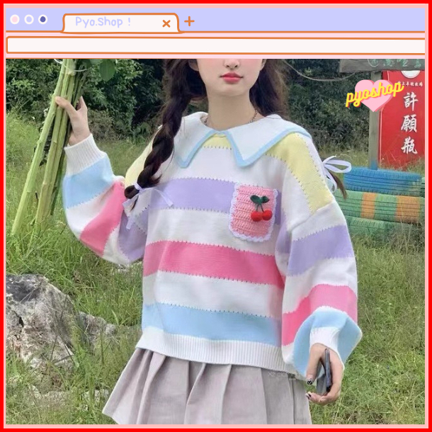 Pyoshop - Sweater Knit Wanita Rajut Cherry Kawai