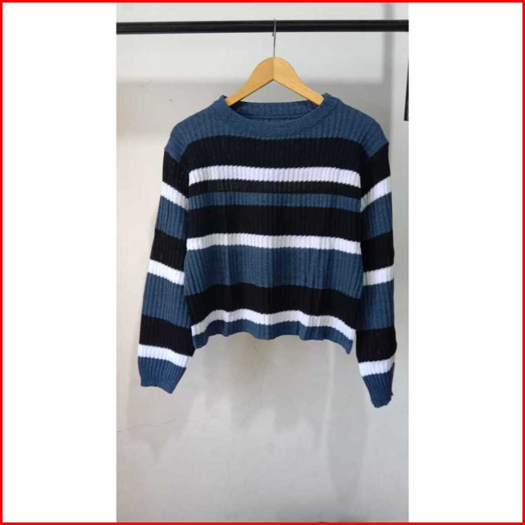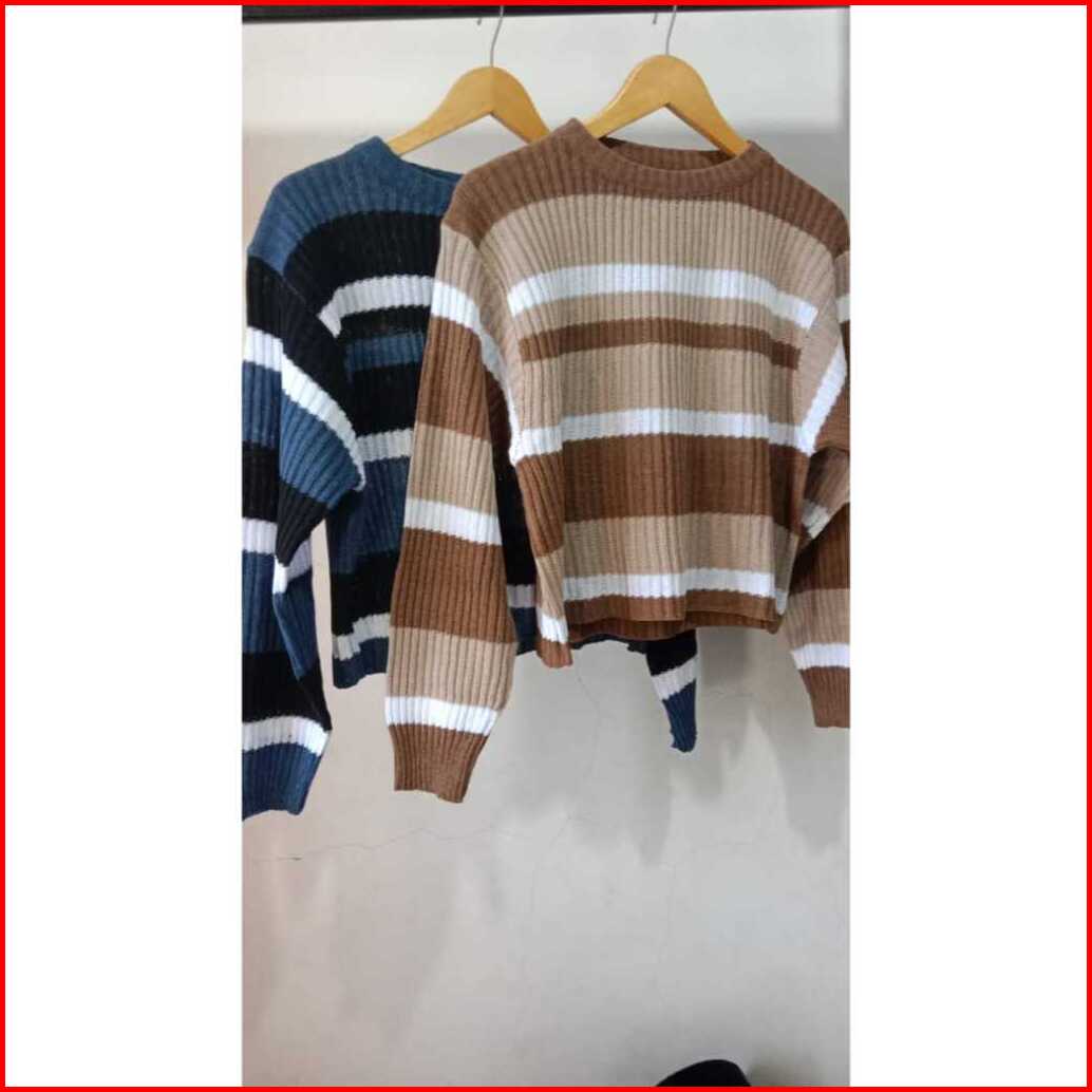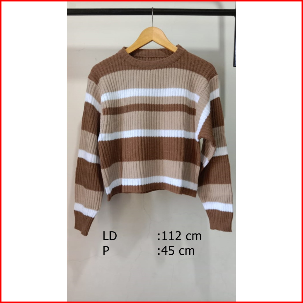 Sweater Rajut Azalea Setriip Crop Top - Sweater Garis Ganda Lengan Panjang - Atasan Wanita Korean Style - Baju Rajut Cew