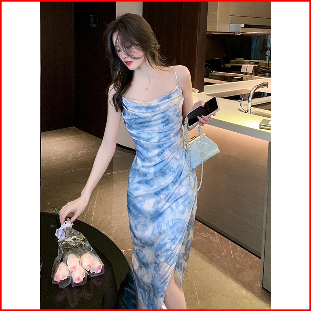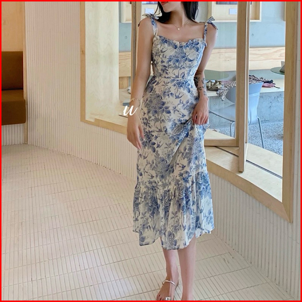 Emita Bloom Baju Dress Biru Muda Pantai Wanita Dress Press Body Korean Style Baju Terusan Wanita Kekinian Casual Dress N
