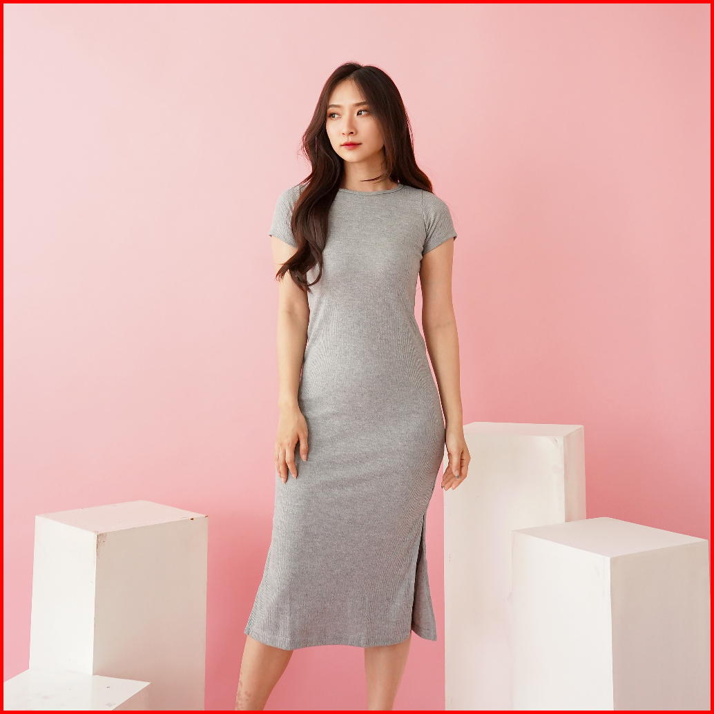 Oroy Dress Knit Rib Korean Dress Wanita Polos Or0990
