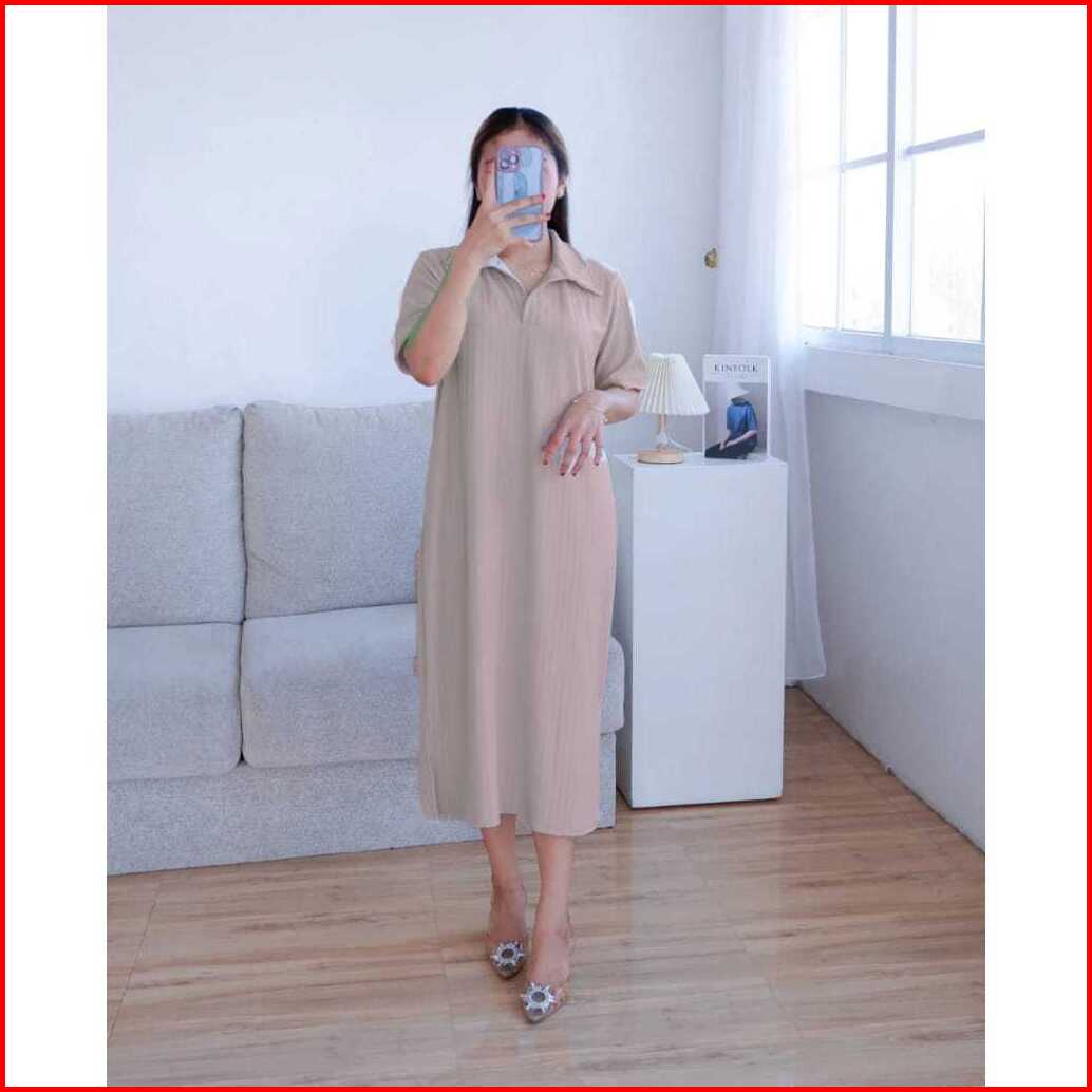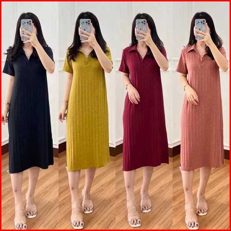 Dress Kenit Rajut Kerah Collar Trendy Knit Slit Samping Midi Dress Dress Kerah Dress Murah Dress Viral Dress Kekinian
