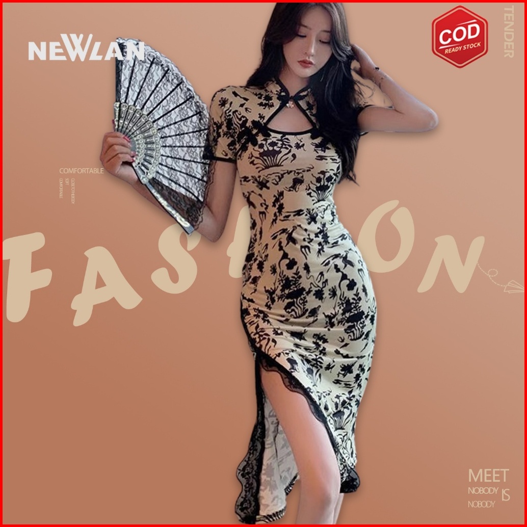 Newlan Qz112 Dress Wanita Lengan Pendek Terbaru Pakaian Wanita Desain Longgar Dan Tipis Warna Solid Rok T-shirt Midi-len