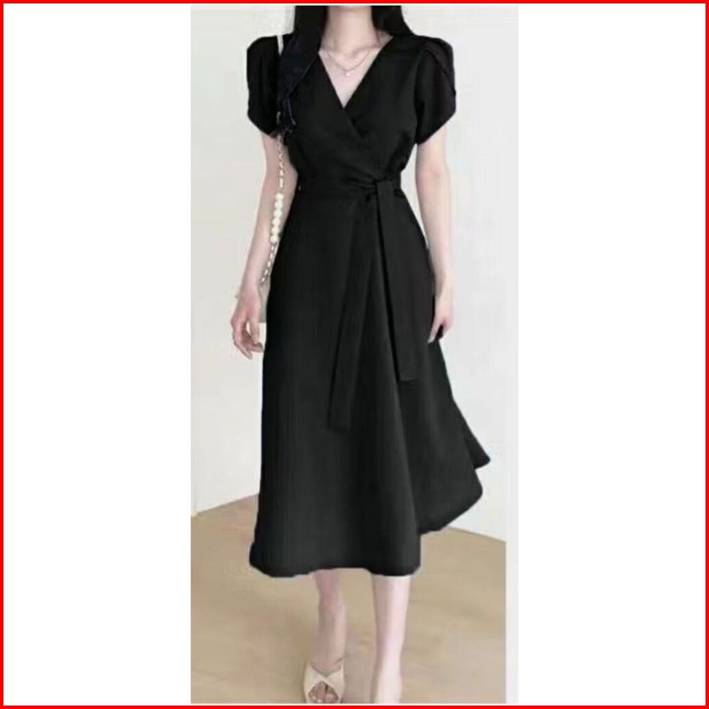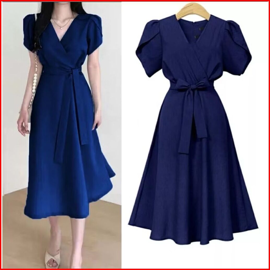 Dress Midi Vneck Lengan Pendek A Line Bumil Friendly Dres Terusan Gaun Pesta Wanita Dress Imlek Cny Longdress Wanita Cas