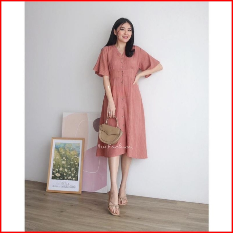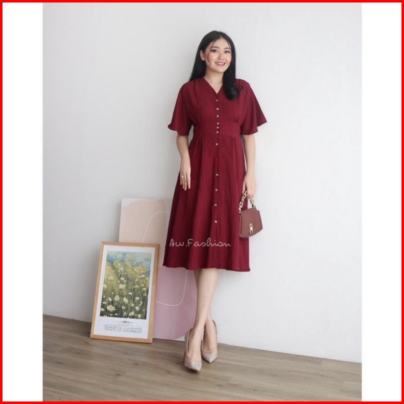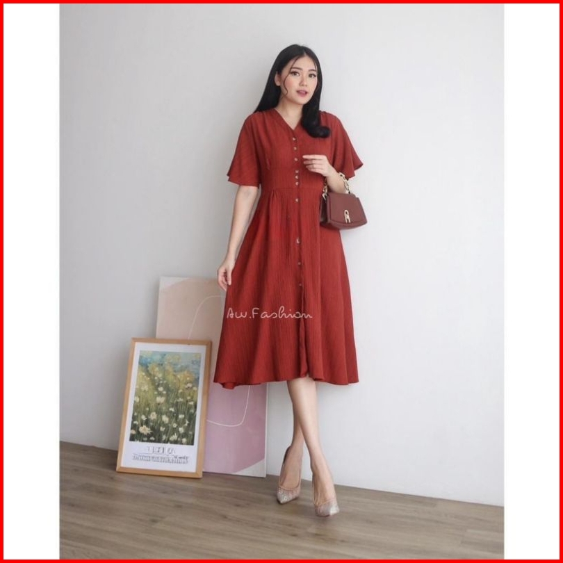 Terlaris Dress Lady Crush Casual Midi Dress Wanita Baju Wanita Dress Korea Midi Dress