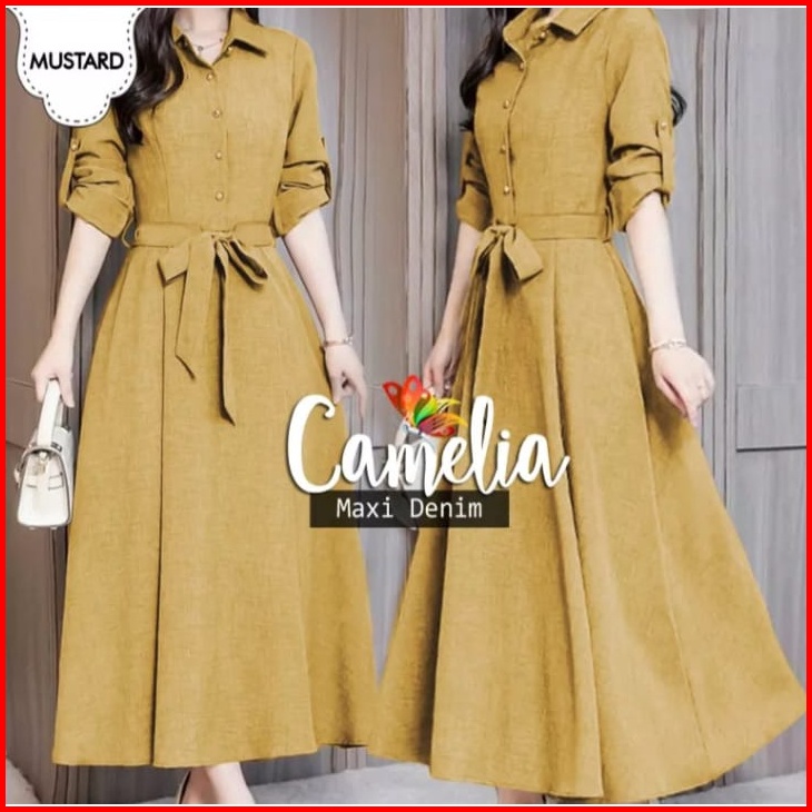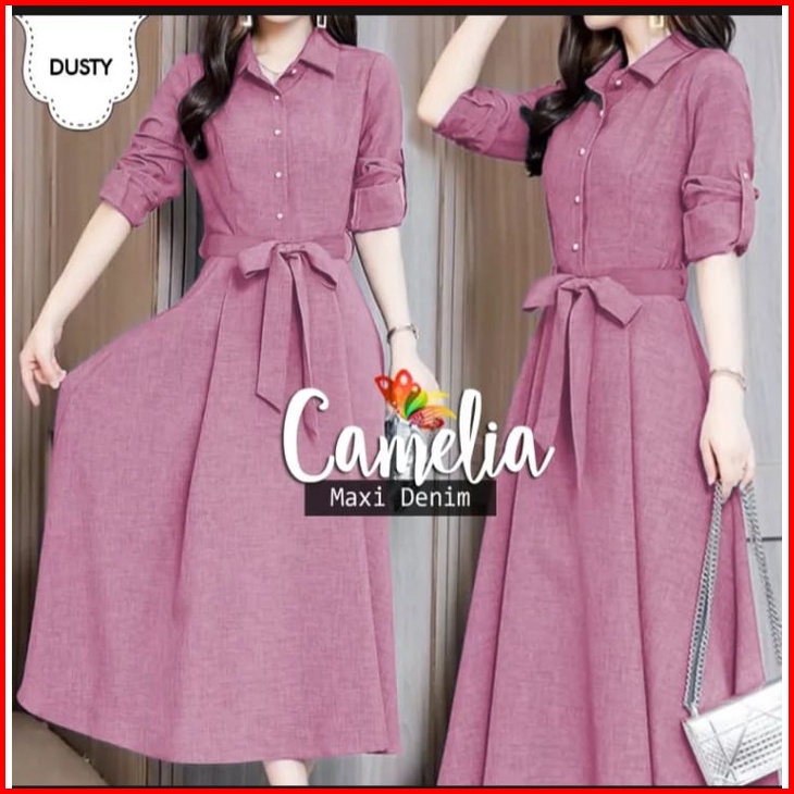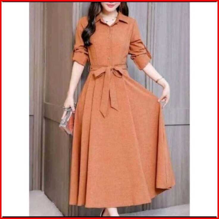 Midi Dress Wanita Remaja Korea Gaya Crinkle Premium