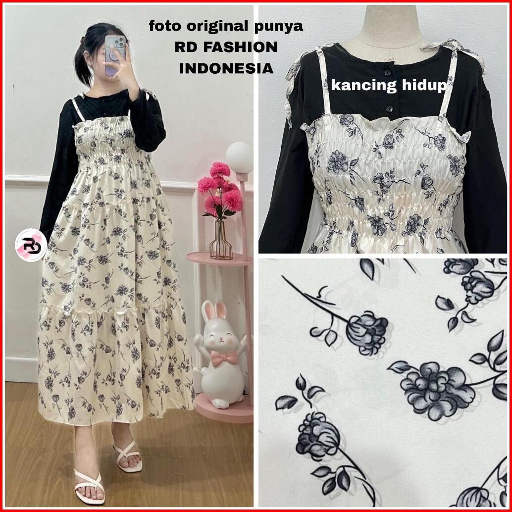 Rd Fashion - Jeniso Dress Smocked Lengan Panjang Dress Motif Bunga Busui Friendly