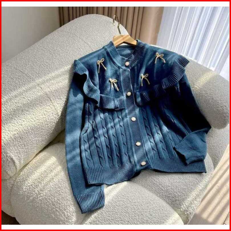 Darika Ruffle Cardy Kardigan Cable Pita Cardigan Rajut Wanita Cardy Kepang