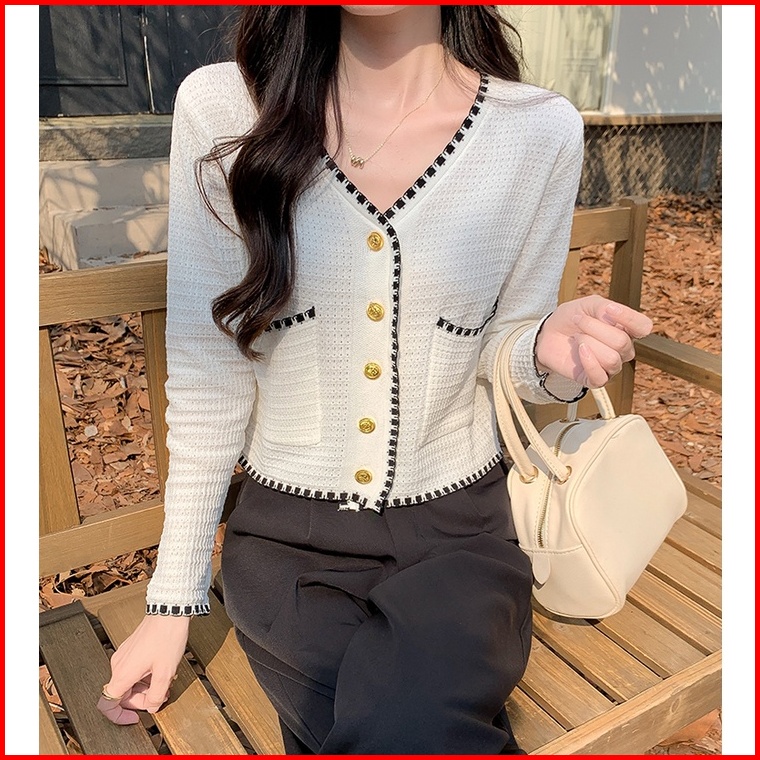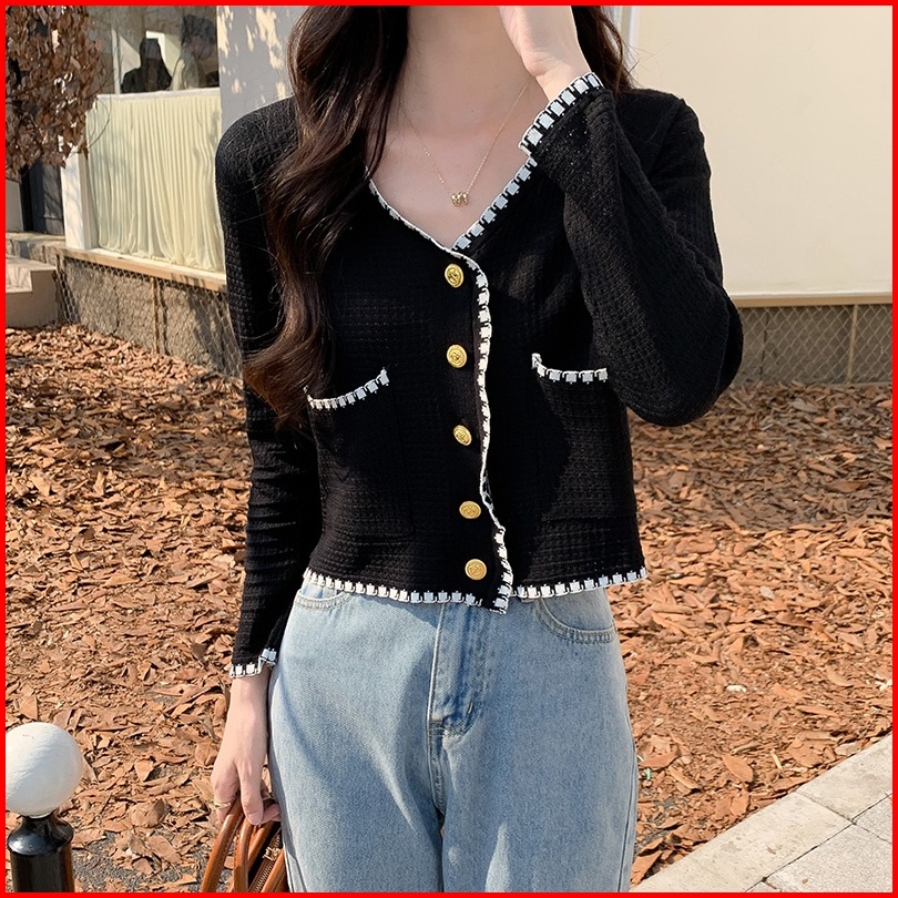 Eunii Atasan Kardigan Rajutan Gaya Crop Top Lengan Panjang Untuk Wanita Korea Style