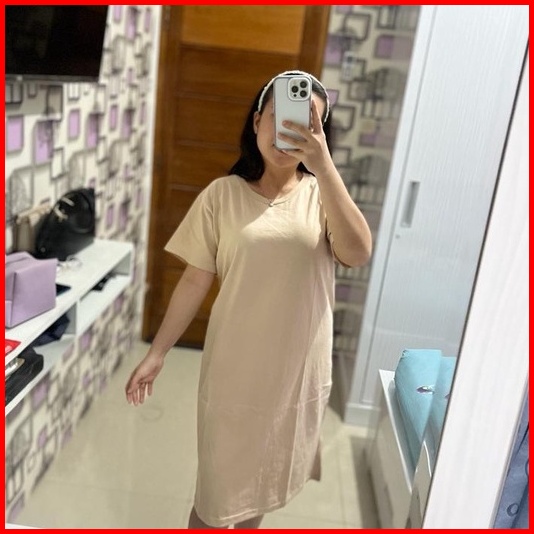 Dress Katun Polos Hitam Beige Sage Green Dress Korea Style