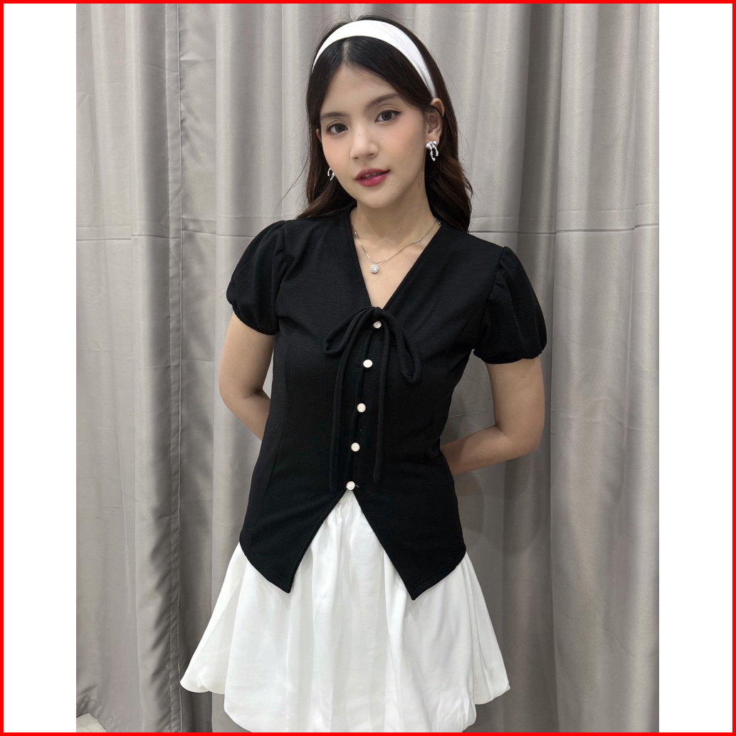 Enmei Miu Bow Top 918 - Atasan Pita Wanita - Bow Knit Top - Baju Atasan Pita Kekinian