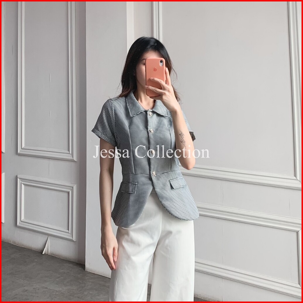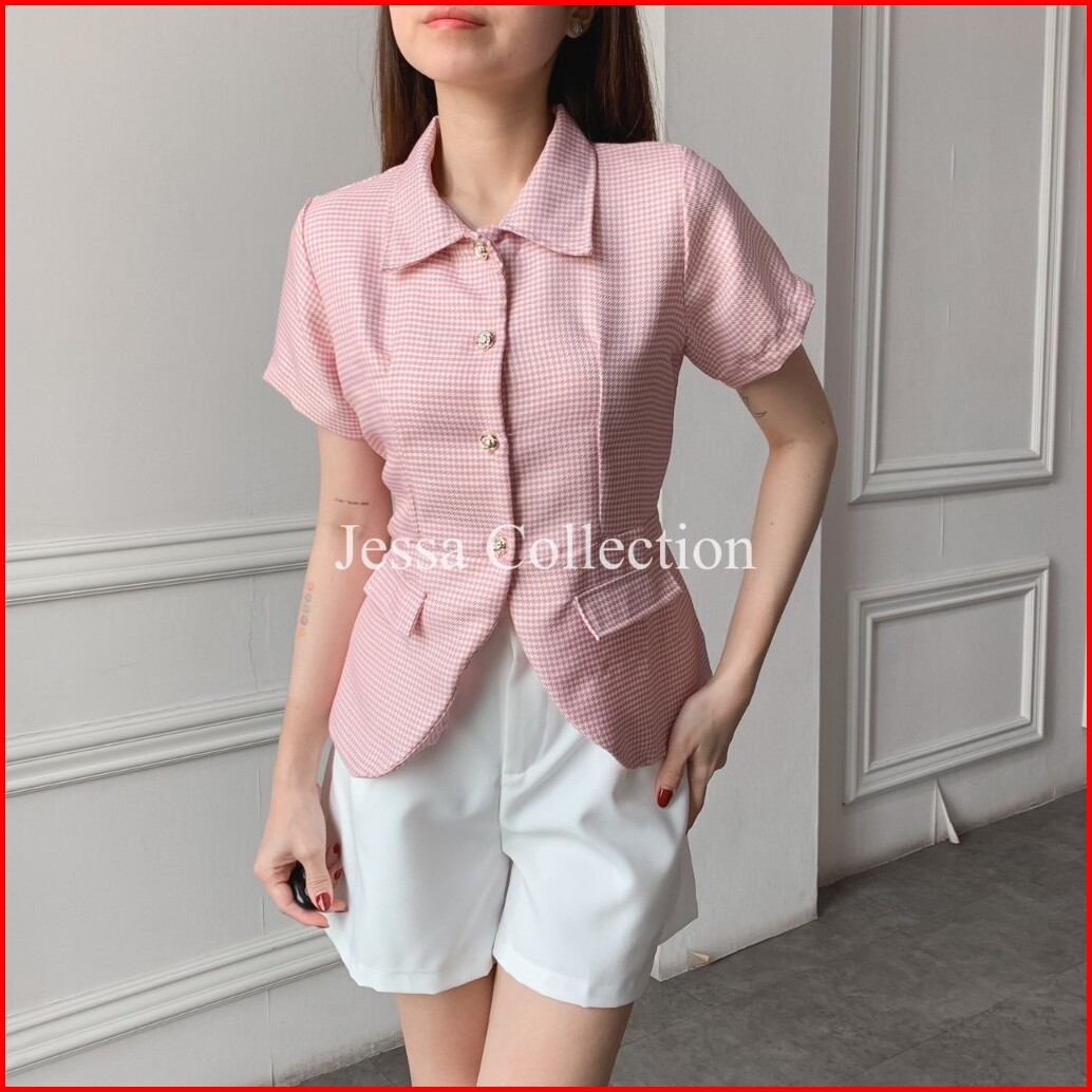 Ariella Top Fg Atasan Wanita Lengan Pendek Bahan Tweed