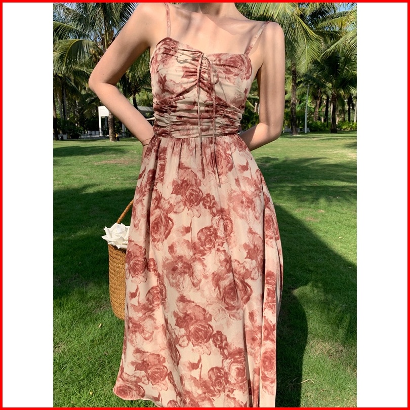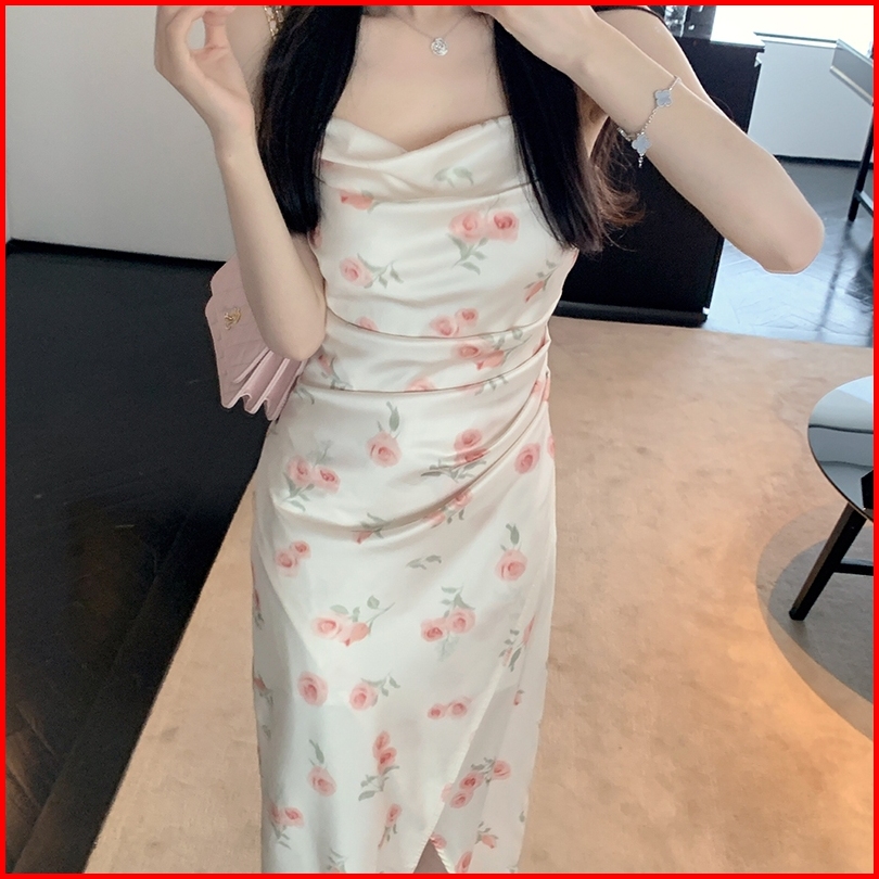 Emita Bloom Baju Flowers Halter Flowy Midi Dress Pantai Press Body Wanita Kekinian Kondangan Korea Style Party Dress Ele