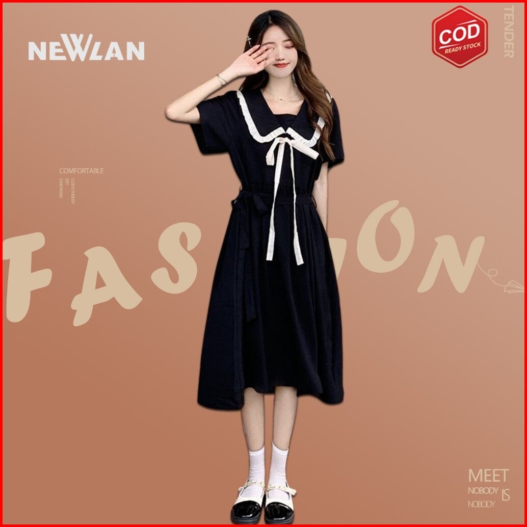 Newlan Qz153 Dress Cheongsam Kerah Modern A Line Dress Midi Ada Big Size Premium Dress Natal Basic Vintage Korean Style