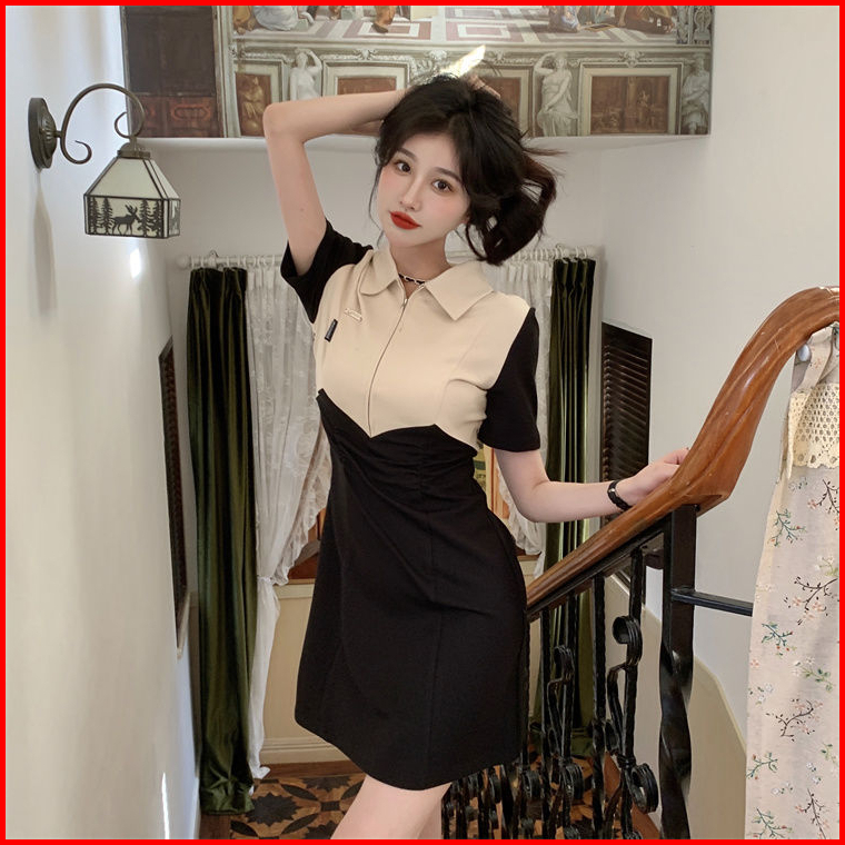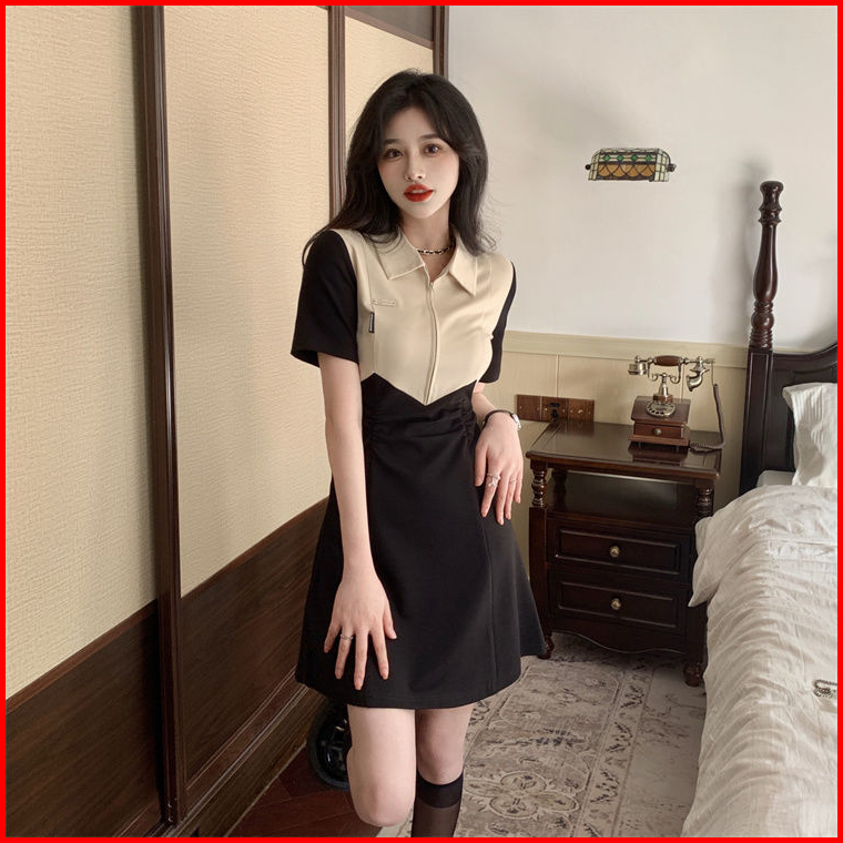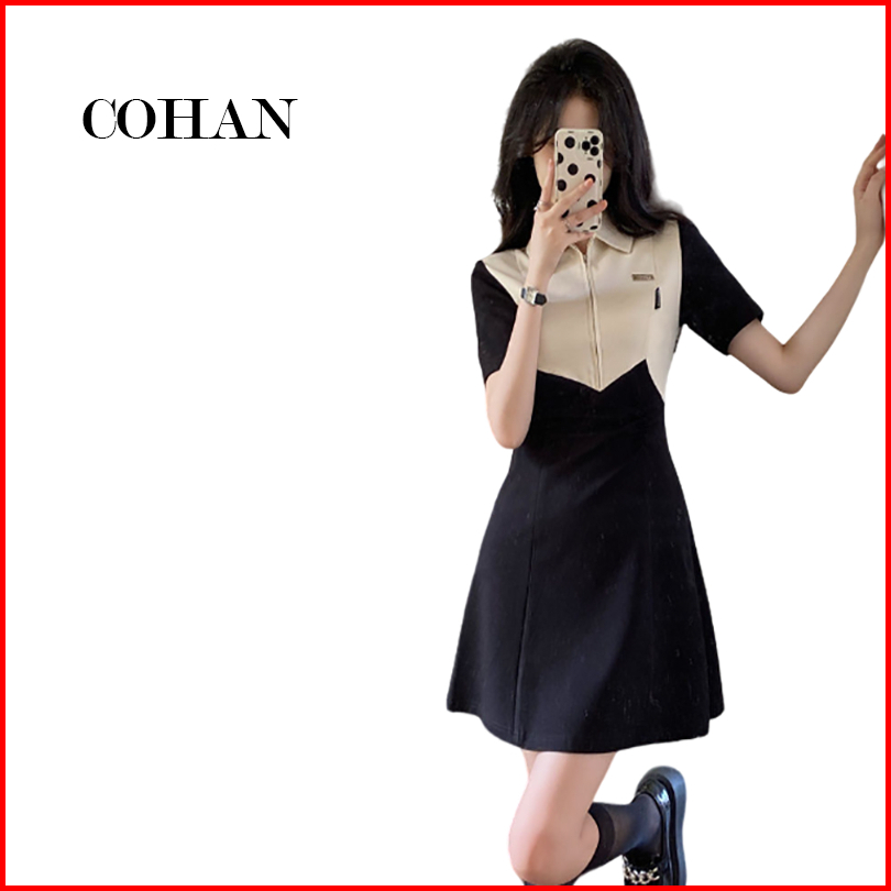 Cohan Dr8048 Dr920 Short Sleeve Dress Outfit Korea Mini Black Cream Color S M L Xl