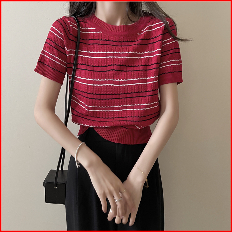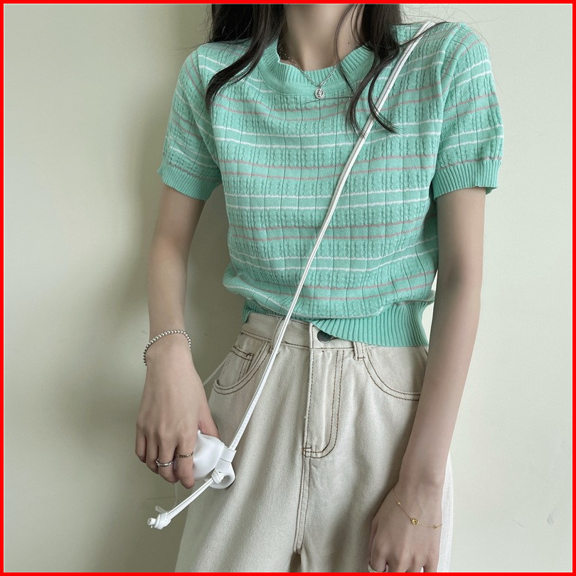 Ajw Atasan Wanita Salur Import Rajut Korean Style Premium Lengan Pendek Hu Atasan Wanita Kekinian Korean Style Impor Len
