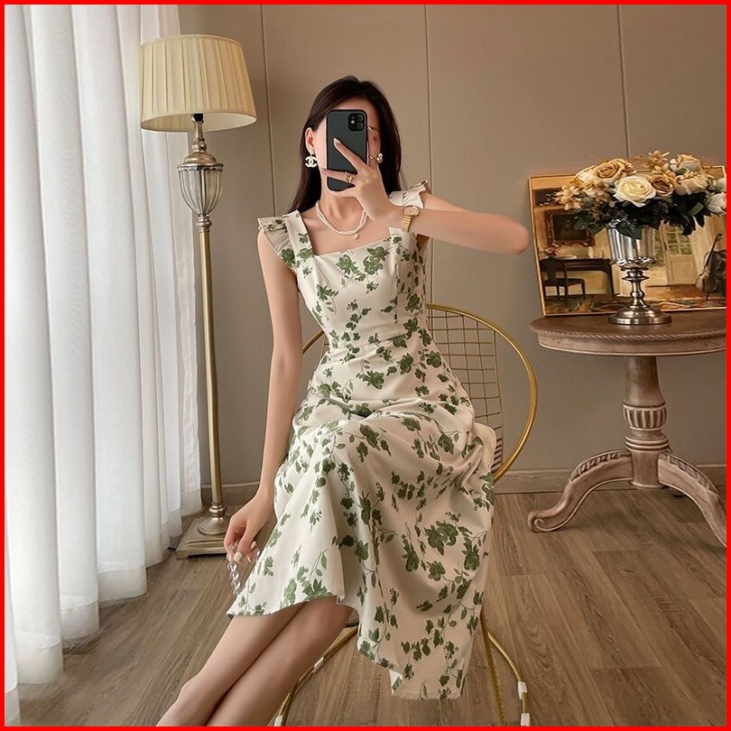 Miss Emita Baju Elegant Party Dress Pantai Bodycon Midi Hijau Kembang Tanpa Lengan Wanita Korean Style Dress Terbaru 202