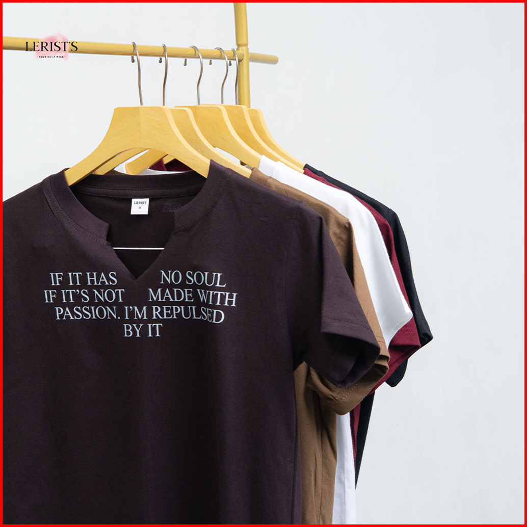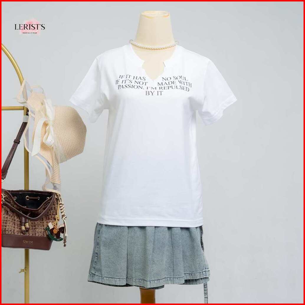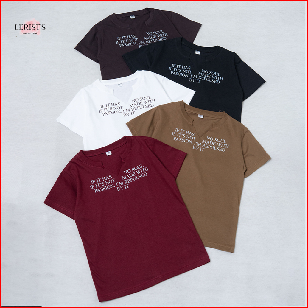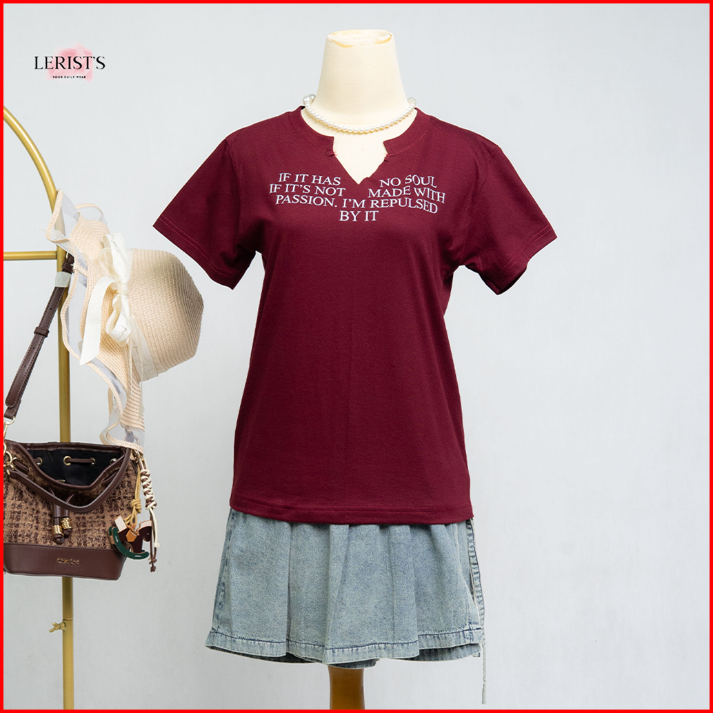 Naomi Reguler Top Lerist- Atasan Wanita Motif Kata Kata Kekinian Leher Vneck Unfinished Cotton Combed 30s Premium Lerist