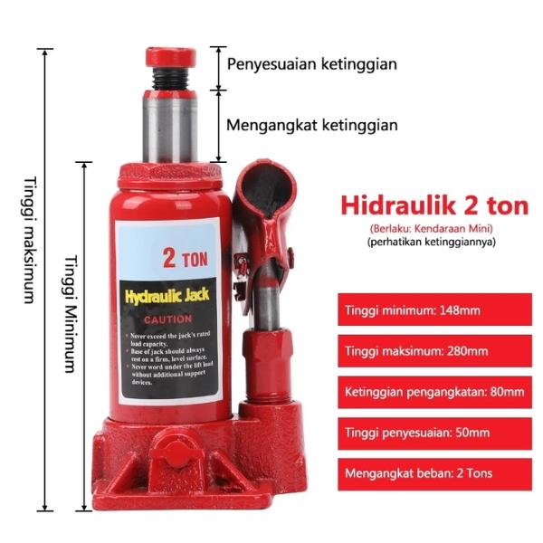 Dongkrak Botol 2/3/5/10 Ton Dongkrak Mobil Hidrolik Hydraulic Jack Universal - 2T