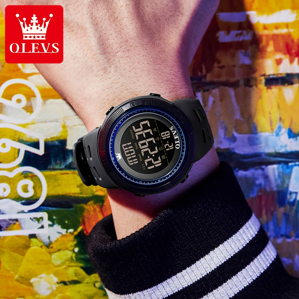OLEVS Jam Tangan Pria Anti Air Original LED Digital Tampilan Ganda Analog Multi Fungsi Jam Alarm Pengatur Waktu Men Watc