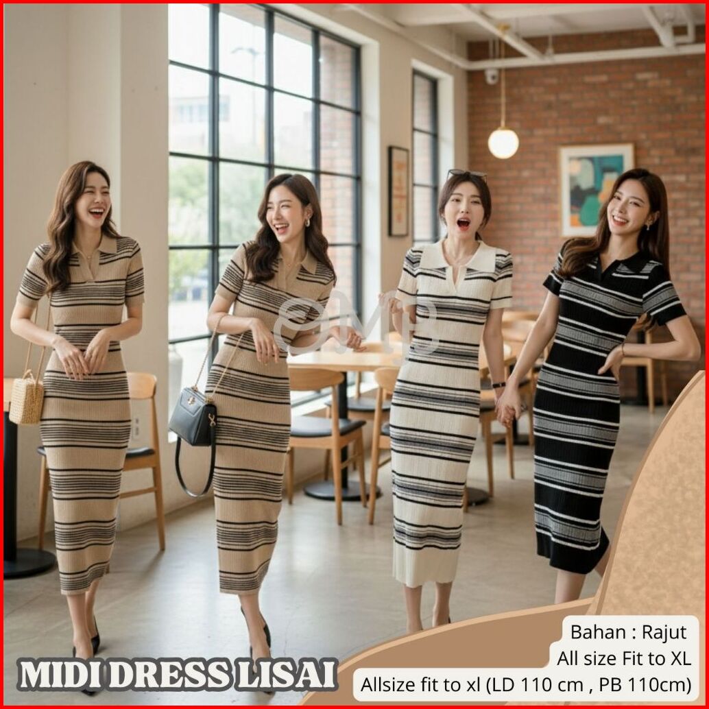 New Midi Lisaii Dress Rajut Kerah Polo Salur - Omb