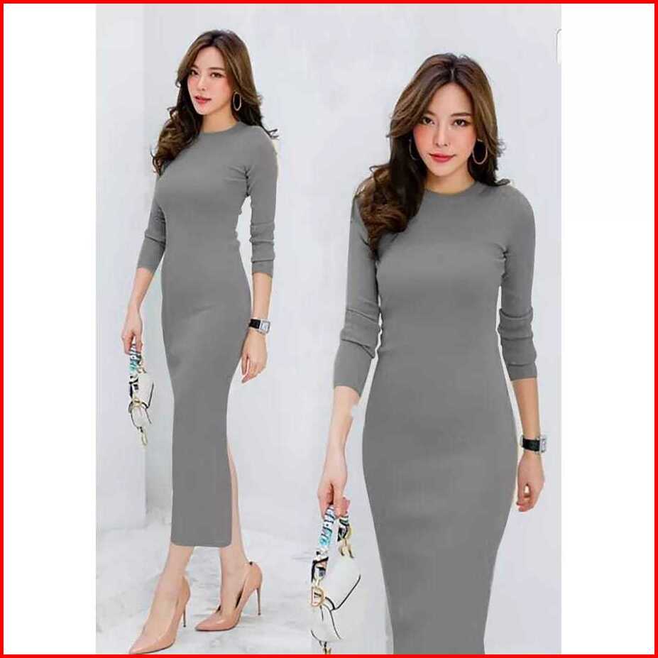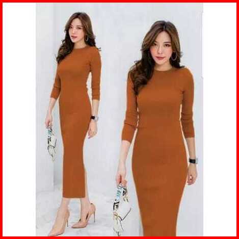 Lagi Promo - Maxi Dress Lexy Korean Style Dress Rajut Wanita Kekinian Bodycon Dress Press Body