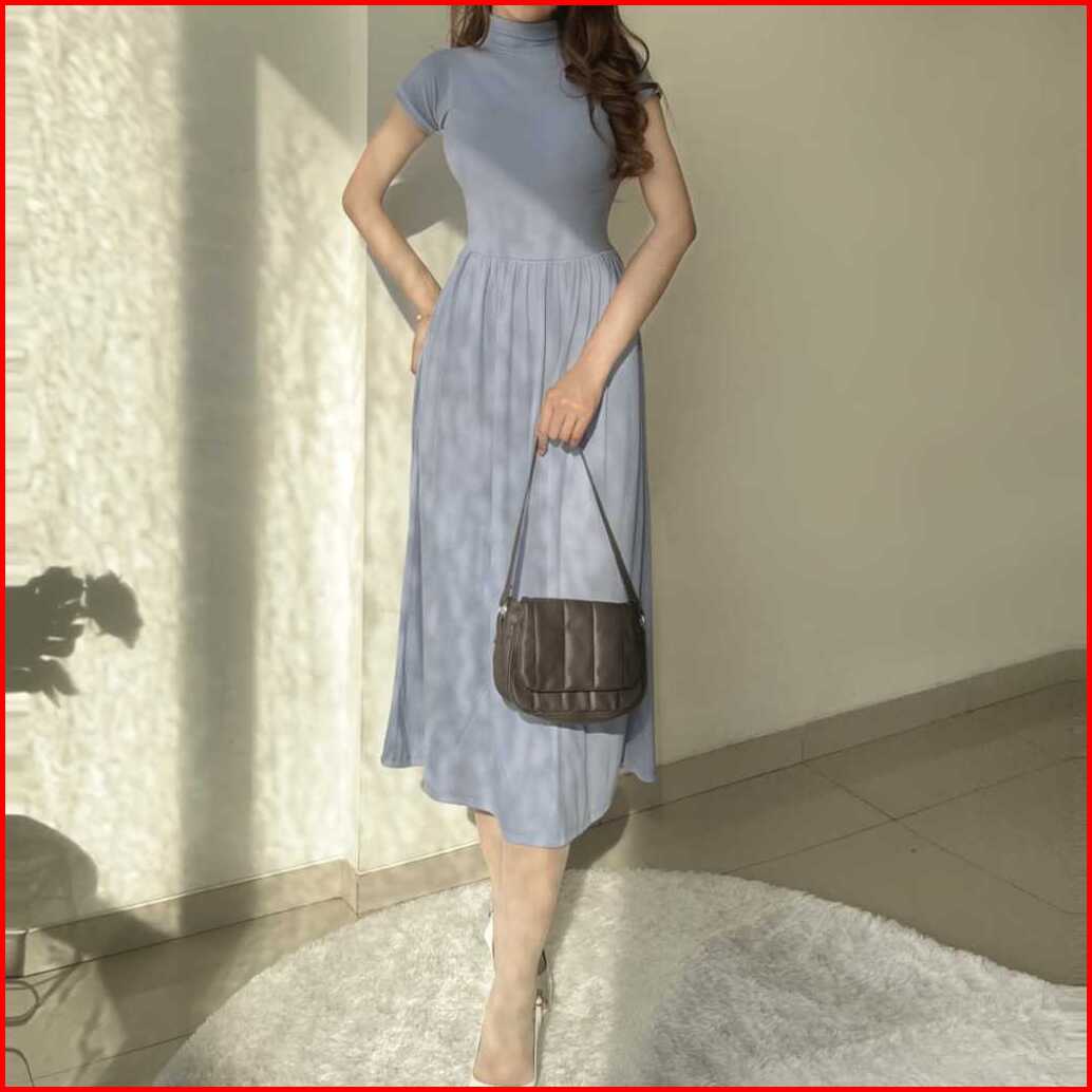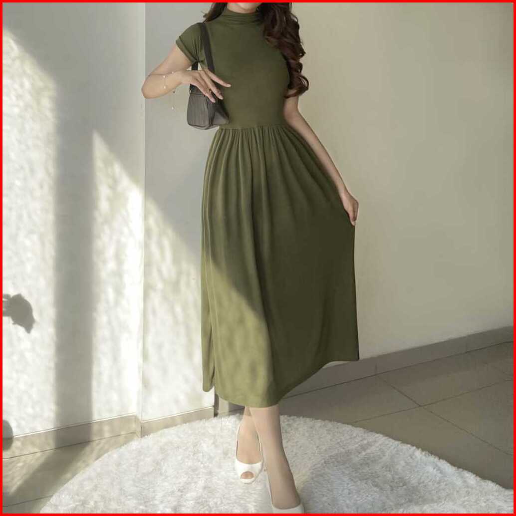 Rx Fashion - Eunri Long Dress Dress Long Turtle Neck Kasual Korea -pn