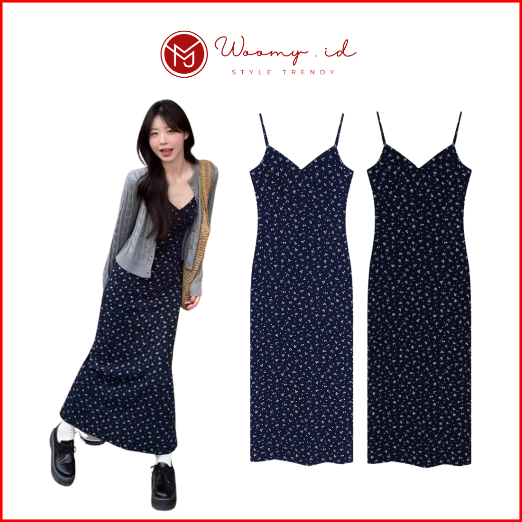 Woomy - Dr505 Dress Wanita Motif Bunga Long Dress Maxi Bodycon Korean Style