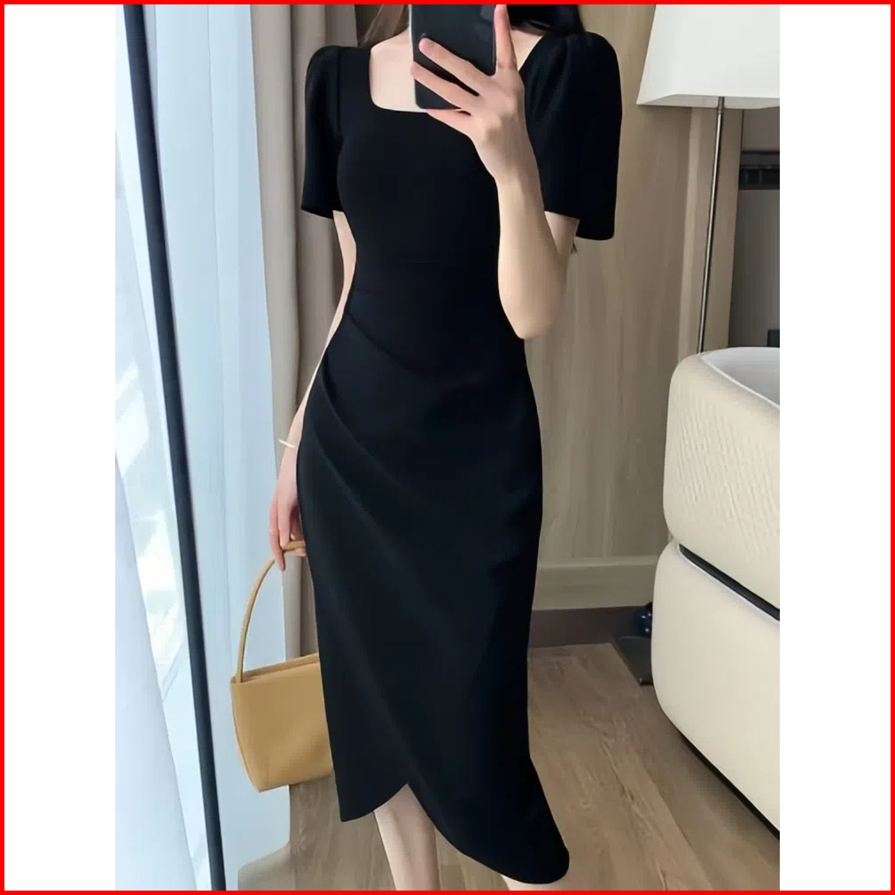Emita Bloom Baju Long Dress Hitam Wanita Kekinian Party Dress Elegant Black Dress Kondangan Korean Style Gaun Pesta Mewa