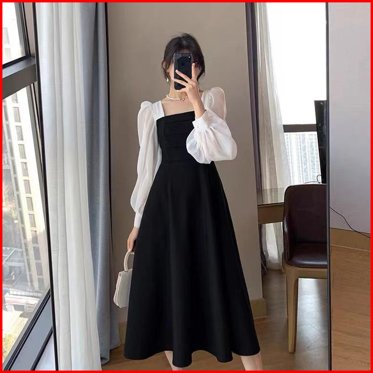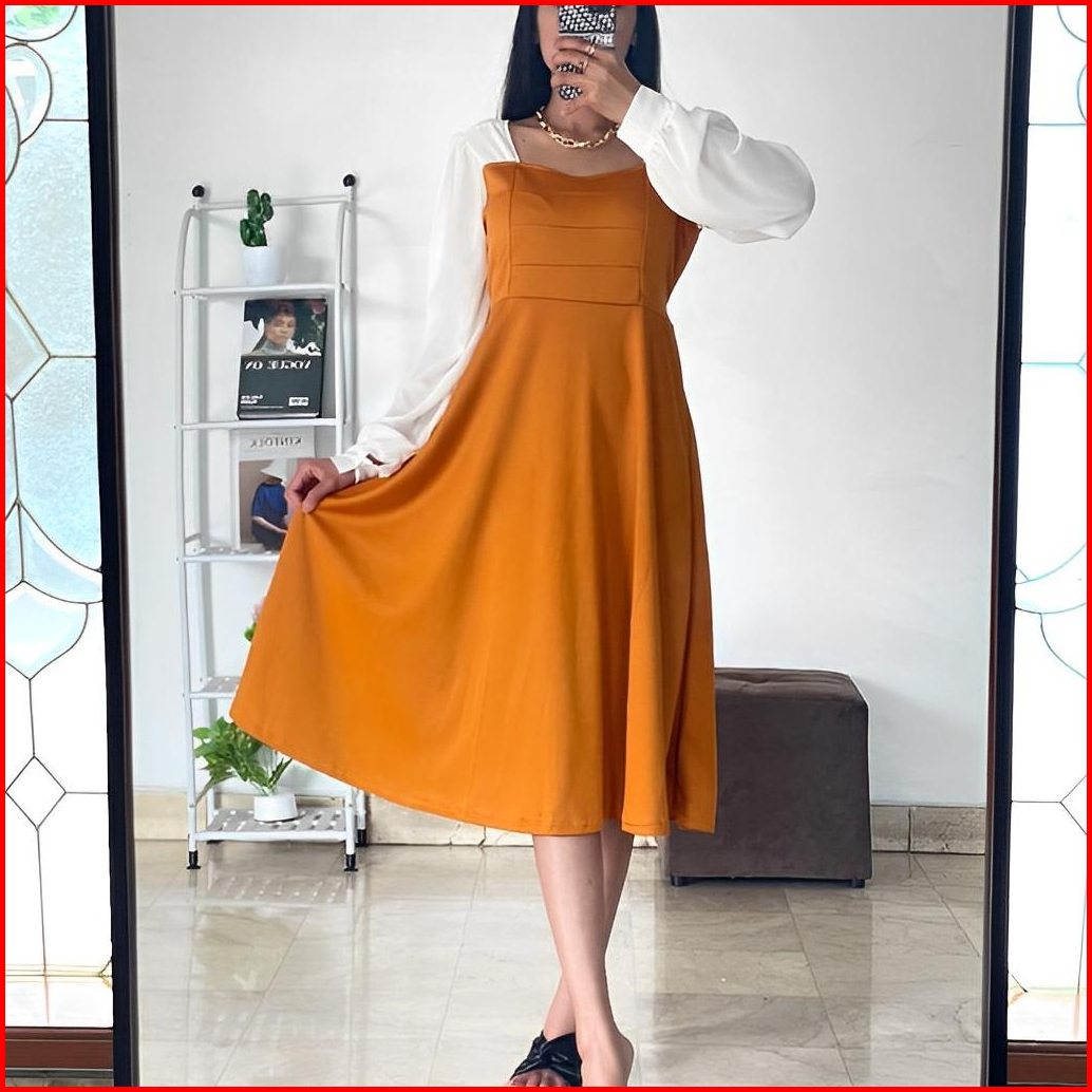 Dress Vinel Dress Midi Korean Style Boat Neck Casual