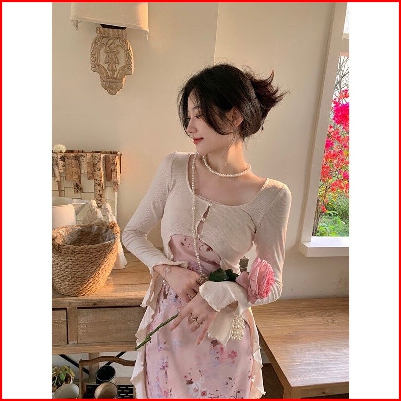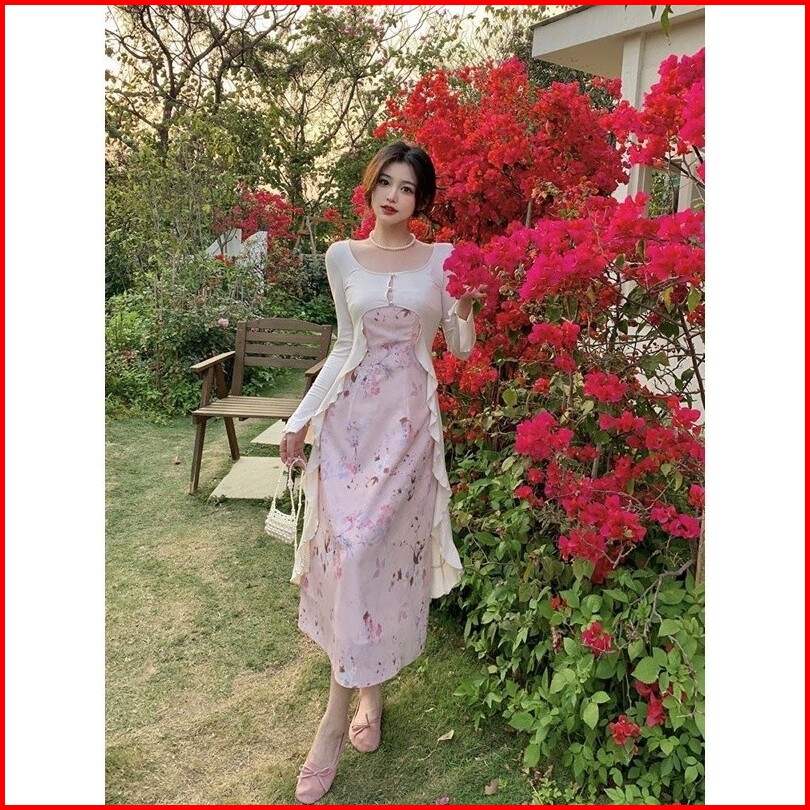 Kano Flower Dress With Long Cardigan Suit Dress Dress Korean Style Dress Pesta Dress Korea Dress Vintage