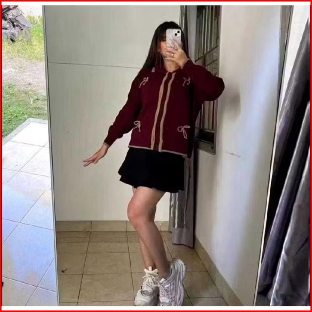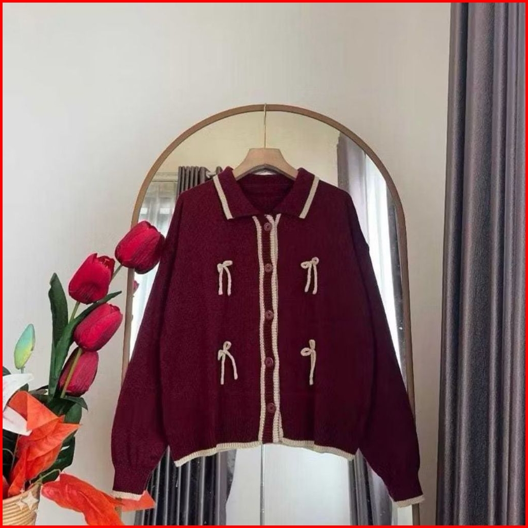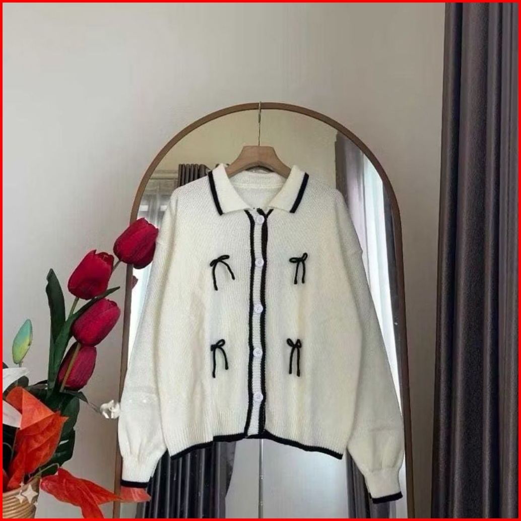 Keiko Cardigan Pita Rajut Wanita Korean Style Tebal Premium Cardy Rajut Pita Terbaru Cardy Poppy Rajut Wanita Kekinian